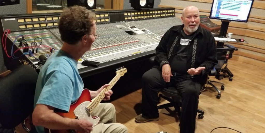 Bobby came up with the background “Play—Ground … Our Hearts Abound.” Having known Ed for many years I had no idea he played piano. He sat down and played the chords for the background parts that we all got a shot at contributing. Tammy had a friend from Italy, Vittorio Maiolo, who was there and did the high parts. Eddie saw some electric guitars sitting around and asked if we wanted him to play. How could we say no? He picked up a Fender Tele and that’s what you hear in the intro and throughout the song. Ed played off the riffs we had on the track perfectly. So, on the track there are about 11 different guitars being played by Ed, Steven Boyer, Larry Alicz and me. I’m not sure if it was a “Wall Of Sound,” but Steve blended everything very, very well.